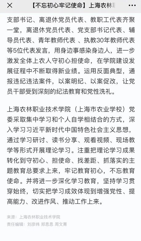 【不忘初心牢记使命】上海农林职业技术学院:开展主题教育,做到学用贯通