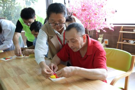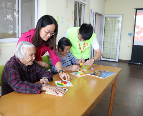 随后党员教师和积极分子们与福利院老人们一起开展了拼图游戏,由于年事已高,老人们手脚不便,大家满怀热情的协助老人,在各游戏环节给予细心温柔的指导,并对完成拼图的老人给予鼓励和表扬。很快,大象、小鹿、海底世界等以一副副色彩绚丽的拼图相继完成了,老人们露出了孩子般开心的笑容。