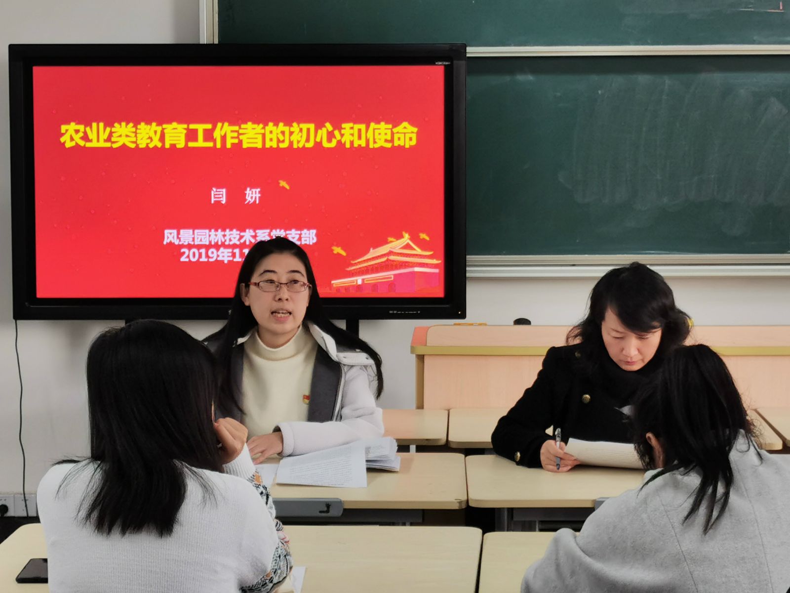 为深入推进支部“不忘初心、牢记使命”主题教育工作开展,充分发挥班子成员的带头作用,11月22日下午,在综合楼503室,园林系主任刘秀云、副主任闫妍给支部全体党员上主题教育微党课。