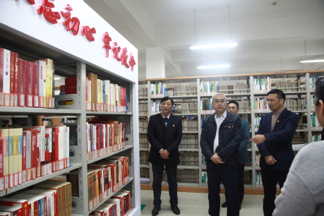 汇报会前,指导组实地走访了图书馆主题教育学习资料书架、党建成果展和动物虚拟实训室、插花实验室。指导组还检查了学院主题教育的相关材料。